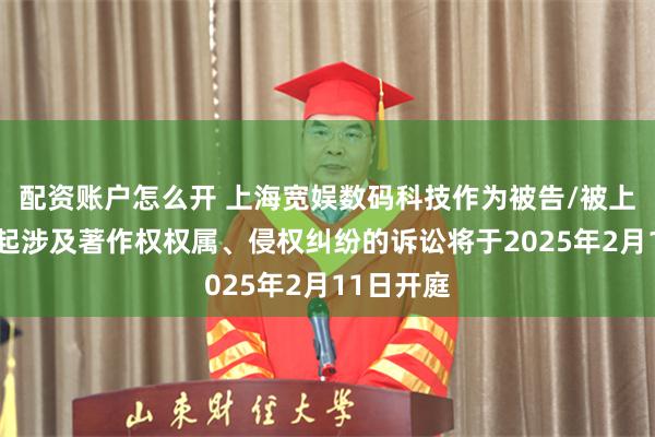 配资账户怎么开 上海宽娱数码科技作为被告/被上诉人的1起涉及著作权权属、侵权纠纷的诉讼将于2025年2月11日开庭